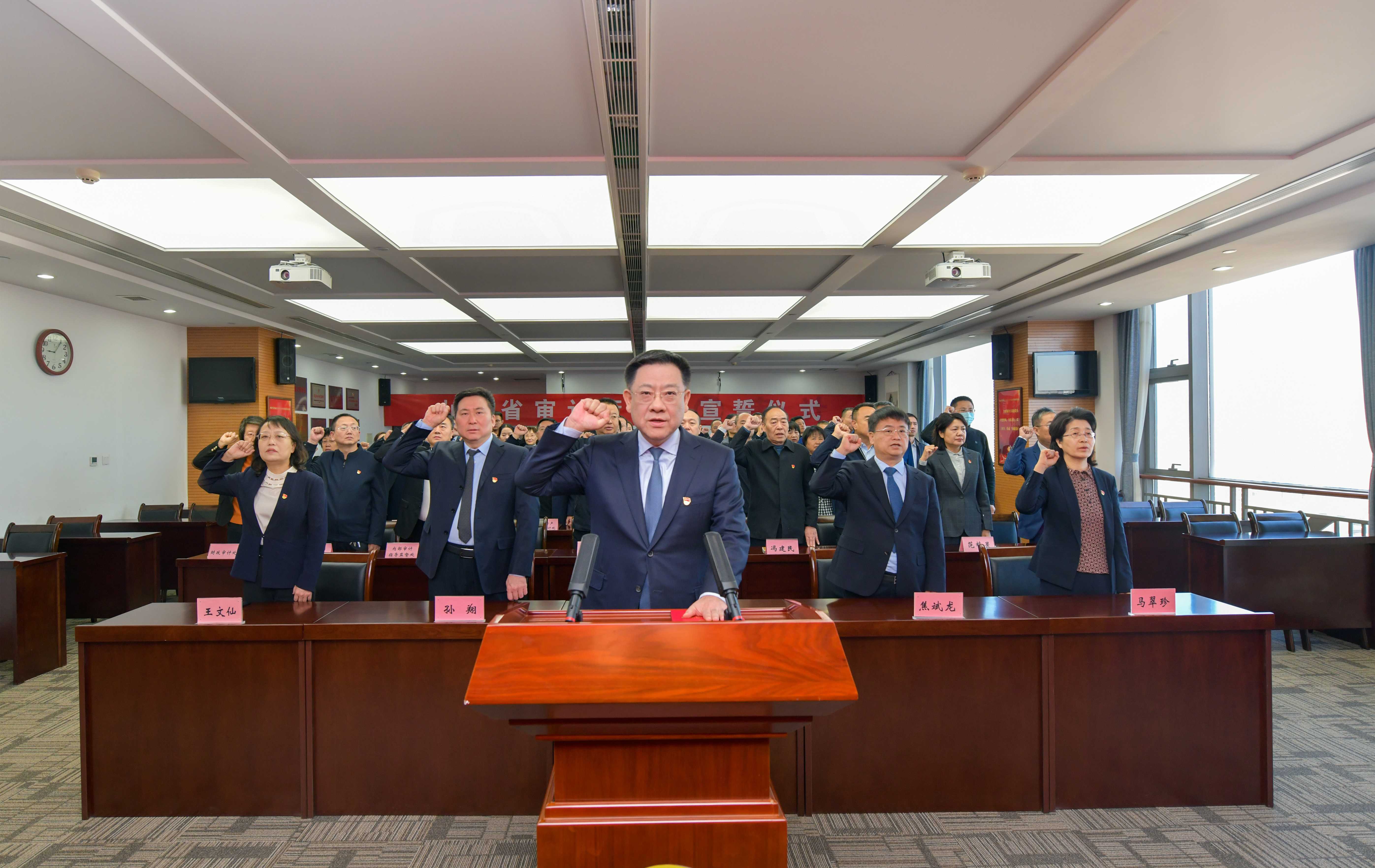省委审计委员会办公室主任、厅党组书记刘文华担任领誓人。厅领导班子成员、各处(室、局)及事业单位约80人共同参加宣誓。