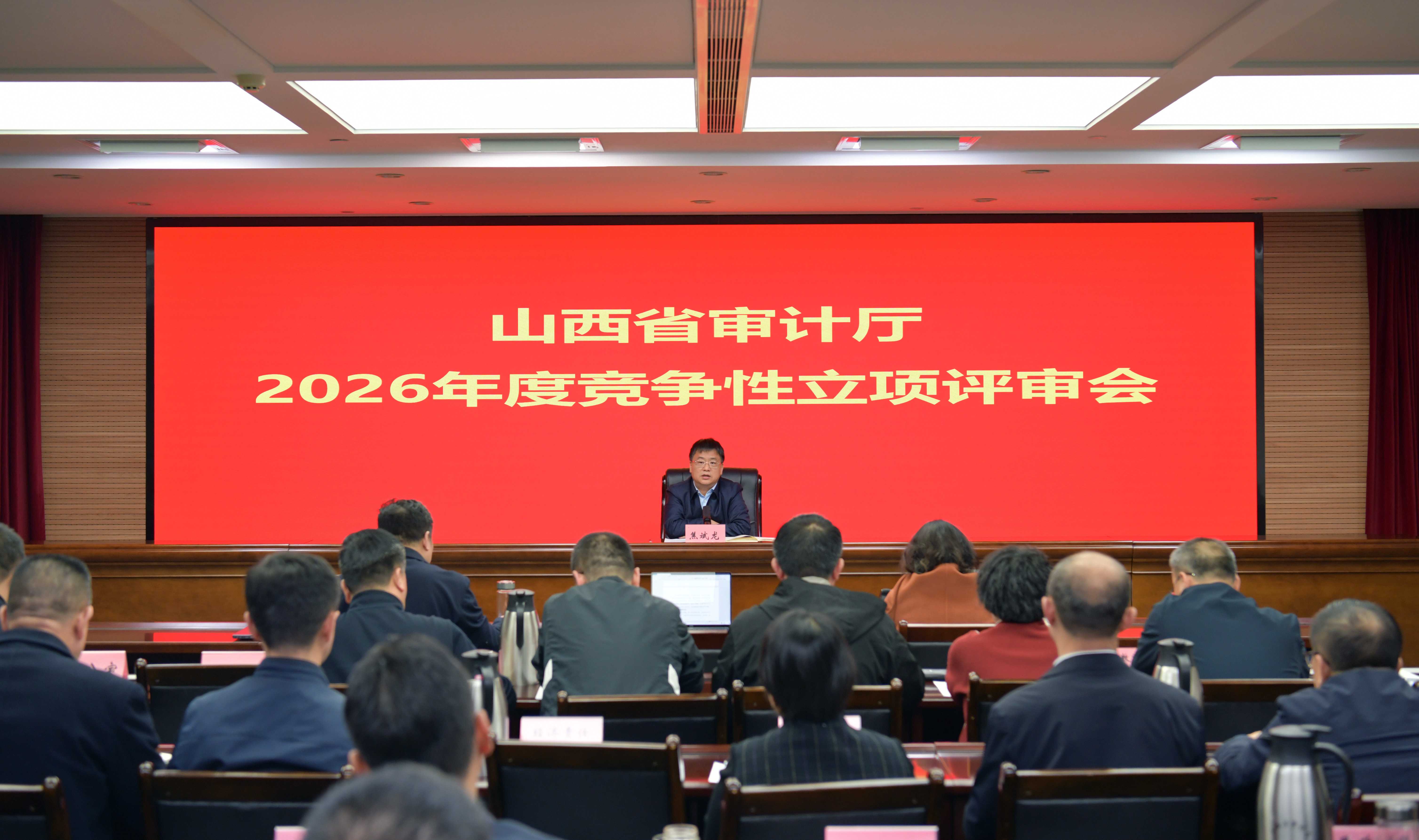 12月2日,山西省审计厅召开2026年度审计项目竞争性立项评审会。11名同志对提交的竞争性项目就立项背景、立项依据、审计目标、组织方式等进行汇报,评审人员现场评审,审计厅厅长焦斌龙出席评审会议。